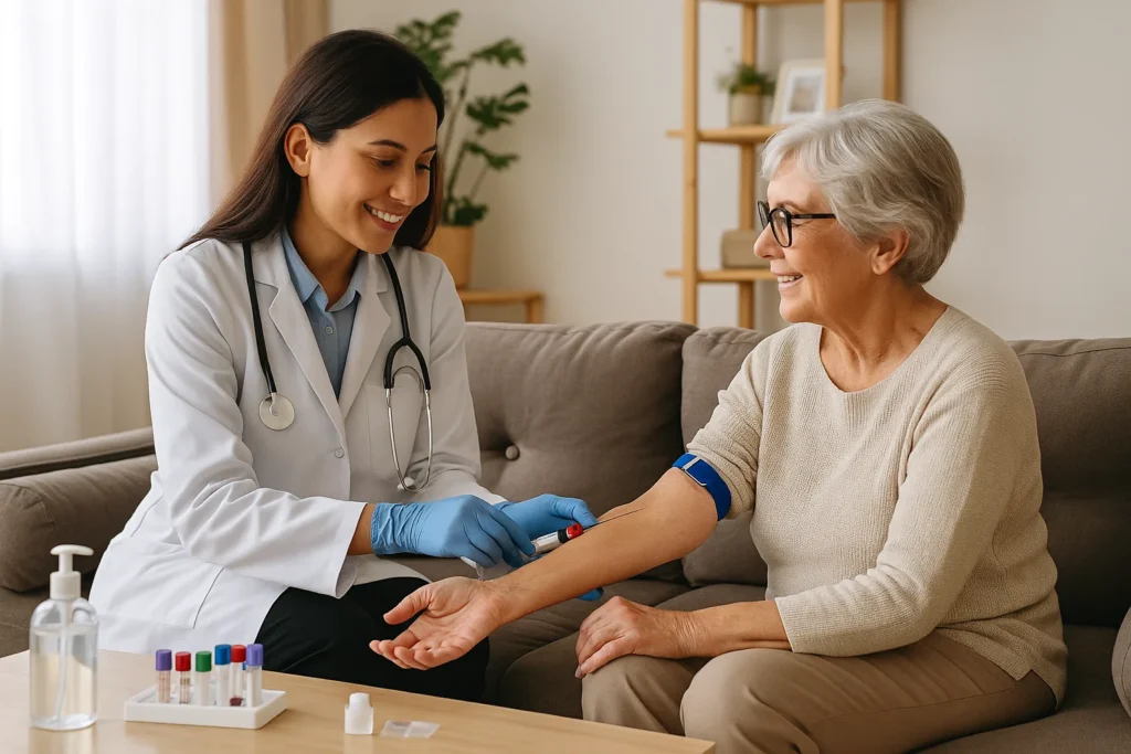 En Galenos Plus realizamos exámenes clínicos y especializados directamente en su hogar. Nuestro equipo médico está capacitado para tomar muestras de sangre, orina y otros estudios, garantizando seguridad, precisión y resultados confiables sin que usted deba desplazarse a un laboratorio.
